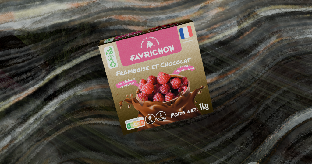 Ce projet est une proposition de packaging fictif réalisée pour la marque Favrichon, dans le cadre d’une réflexion autour du redesign de ses emballages en carton. Le travail inclut la création graphique du packaging, les tracés de découpe techniques ainsi qu’un mockup 3D réalisé sur Blender. L’ensemble du design a été pensé pour rester fidèle à l’identité de la marque tout en modernisant sa présentation en rayon.