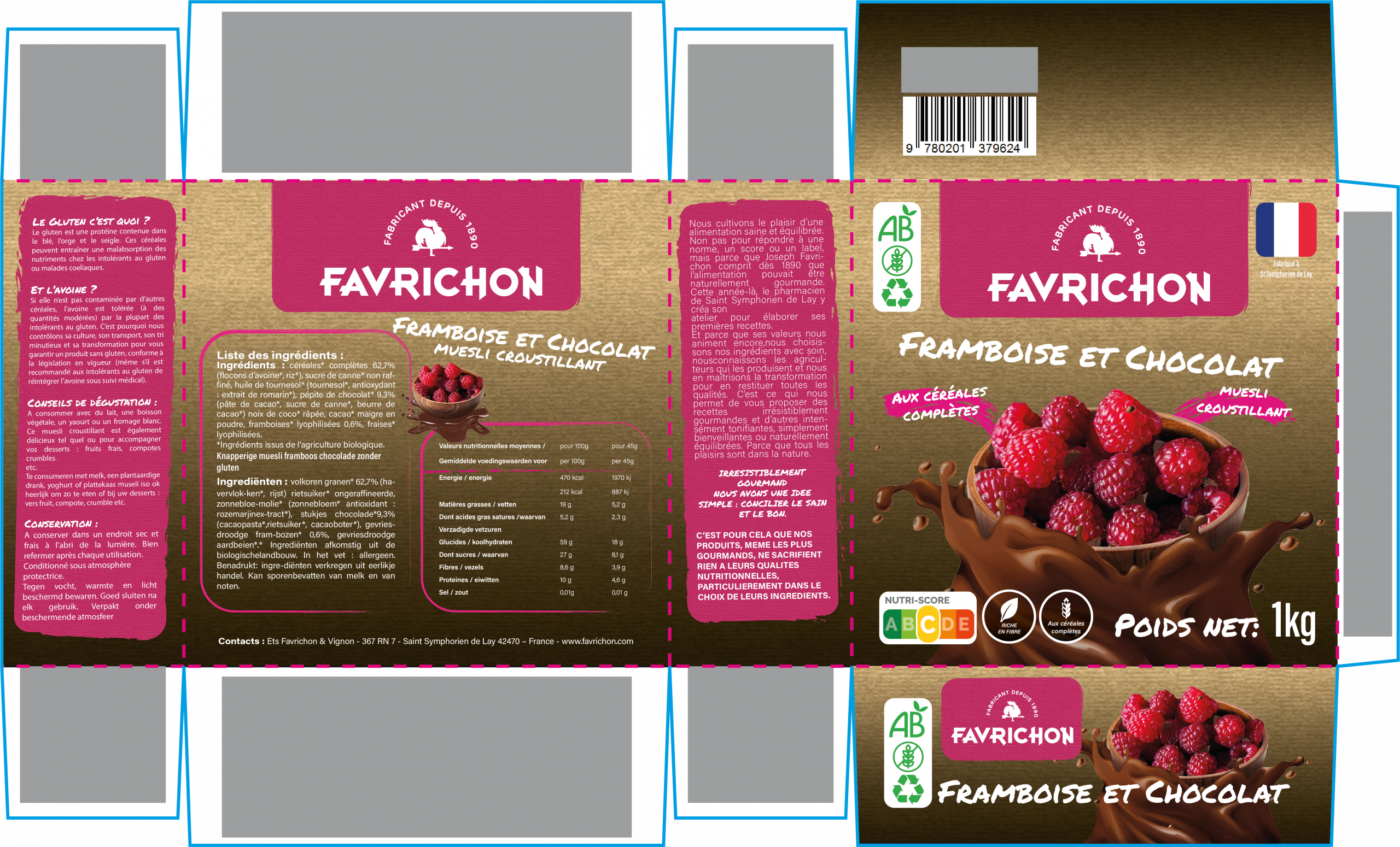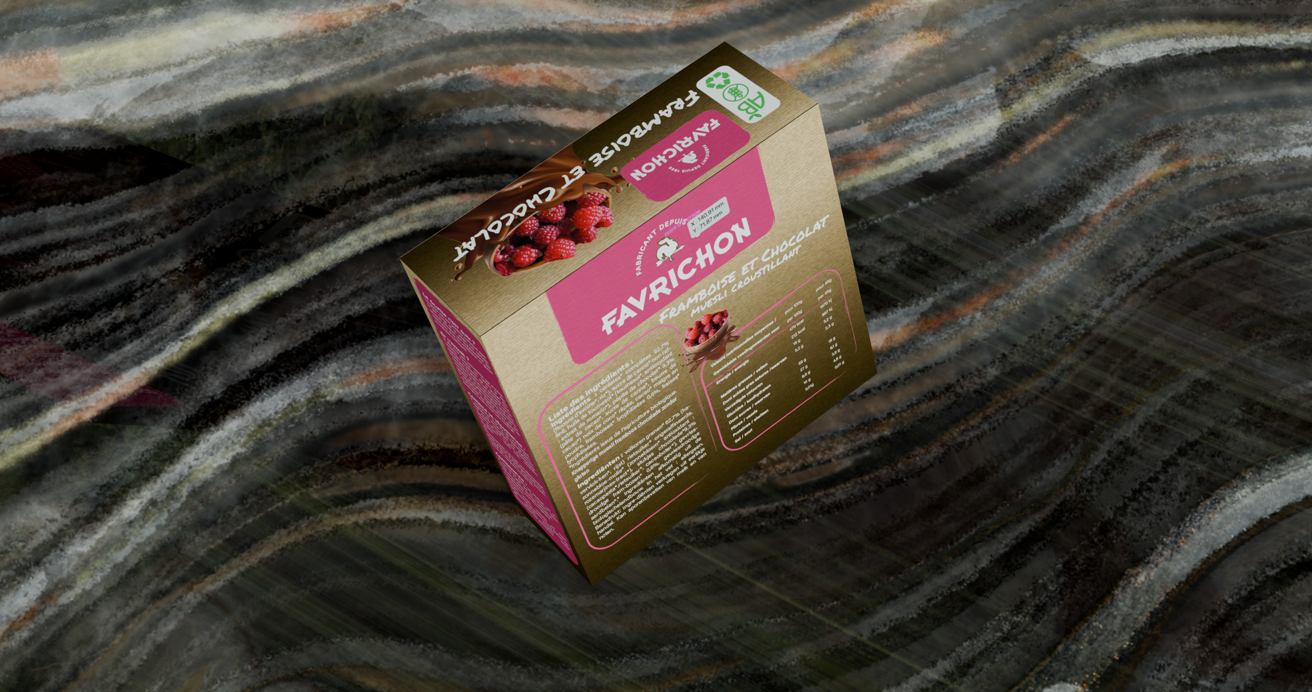 Ce projet est une proposition de packaging fictif réalisée pour la marque Favrichon, dans le cadre d’une réflexion autour du redesign de ses emballages en carton. Le travail inclut la création graphique du packaging, les tracés de découpe techniques ainsi qu’un mockup 3D réalisé sur Blender. L’ensemble du design a été pensé pour rester fidèle à l’identité de la marque tout en modernisant sa présentation en rayon.